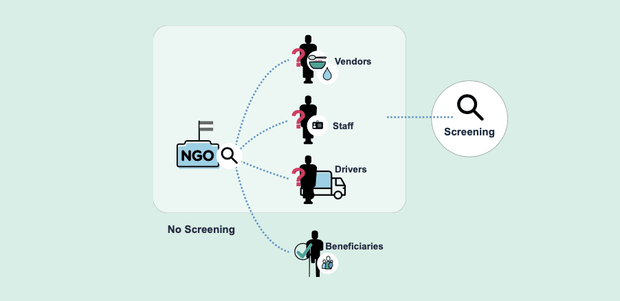 While humanitarian organisations have been willing to screen staff, sub-grantees, contractors and vendors, they have drawn a ‘red line’ at screening final beneficiaries.