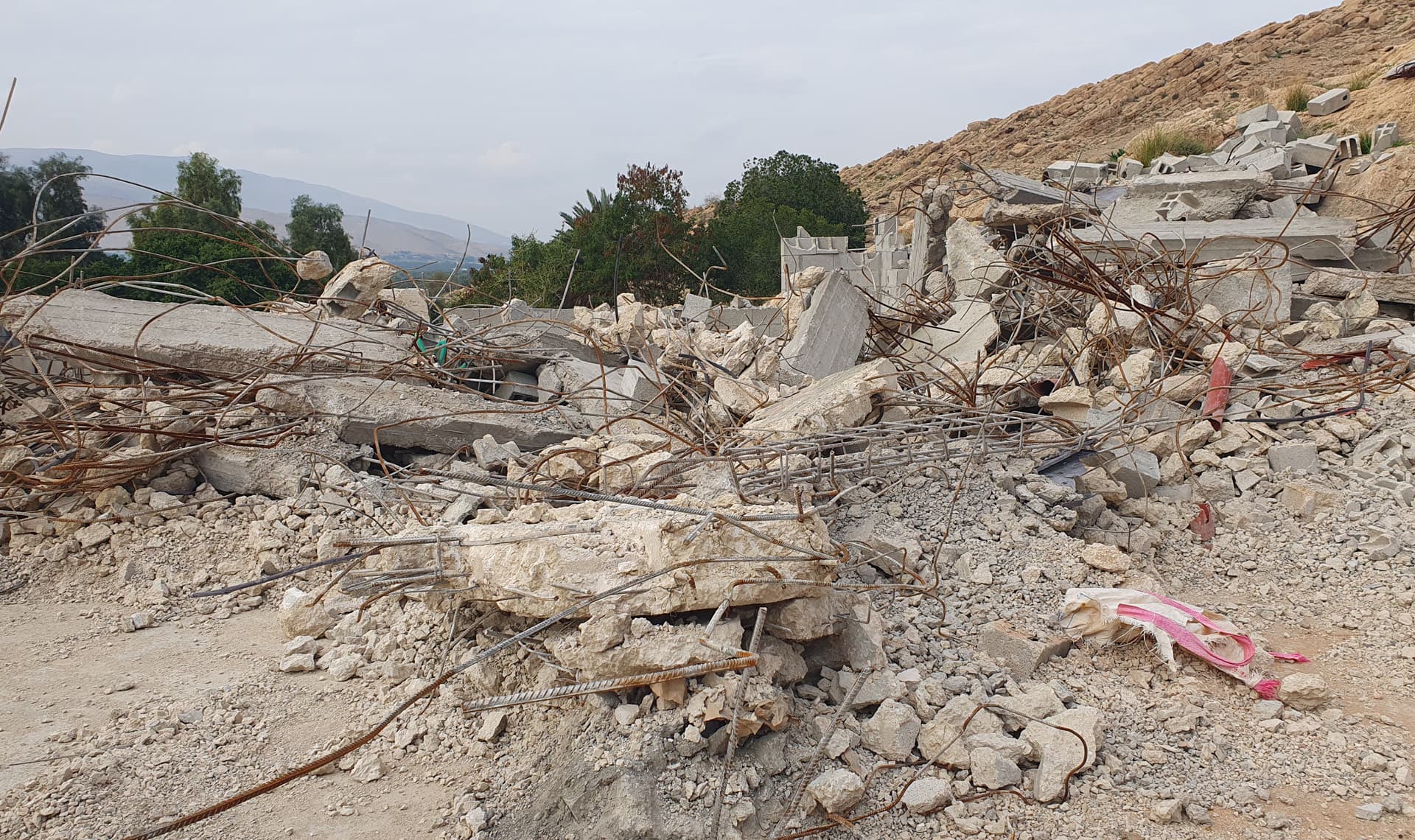 I den lilla byn Al Jiftlika i norra Jordandalen på Västbanken möter jag Hani Atawneh. Hon står bokstavligen i ruinerna av sitt eget hus. Jag skymtar en trasig blå stol och klädesplagg som ligger begravda mellan cementblock och armeringsjärn – klädesplagg som i panik lämnats kvar.