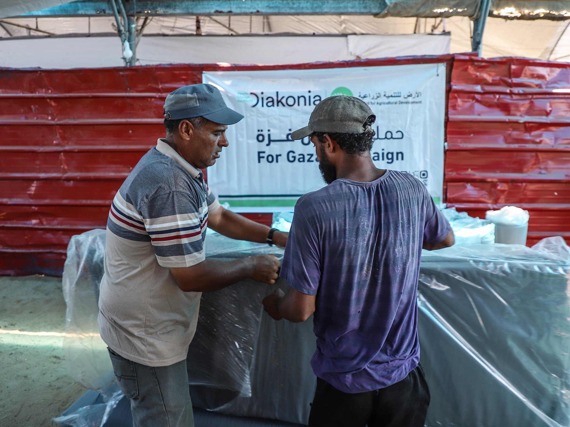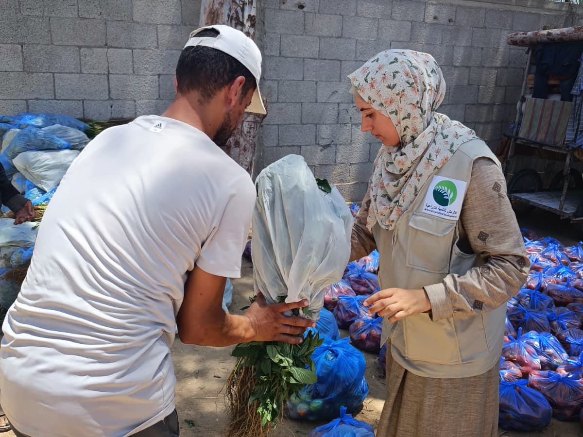 Diakonias samarbetsorganisation Al Ard jobbar vanligtvis med bönder. Före kriget täcktes hälften av Gazas livsmedelsbehov av inhemsk produktion. Nu har Israel slagit ut det mesta av jordbruket, och förutom ett omfattande humanitärt stöd hjälper Al Ard också till att laga brunnar och bevattningsanläggningar, att stötta odlingar, bland annat grönsaksproduktion, och de har lyckats få in djurfoder så att kor, får och getter kan hållas vid liv och ge mjölk, ost och kött till den hungrande befolkningen.