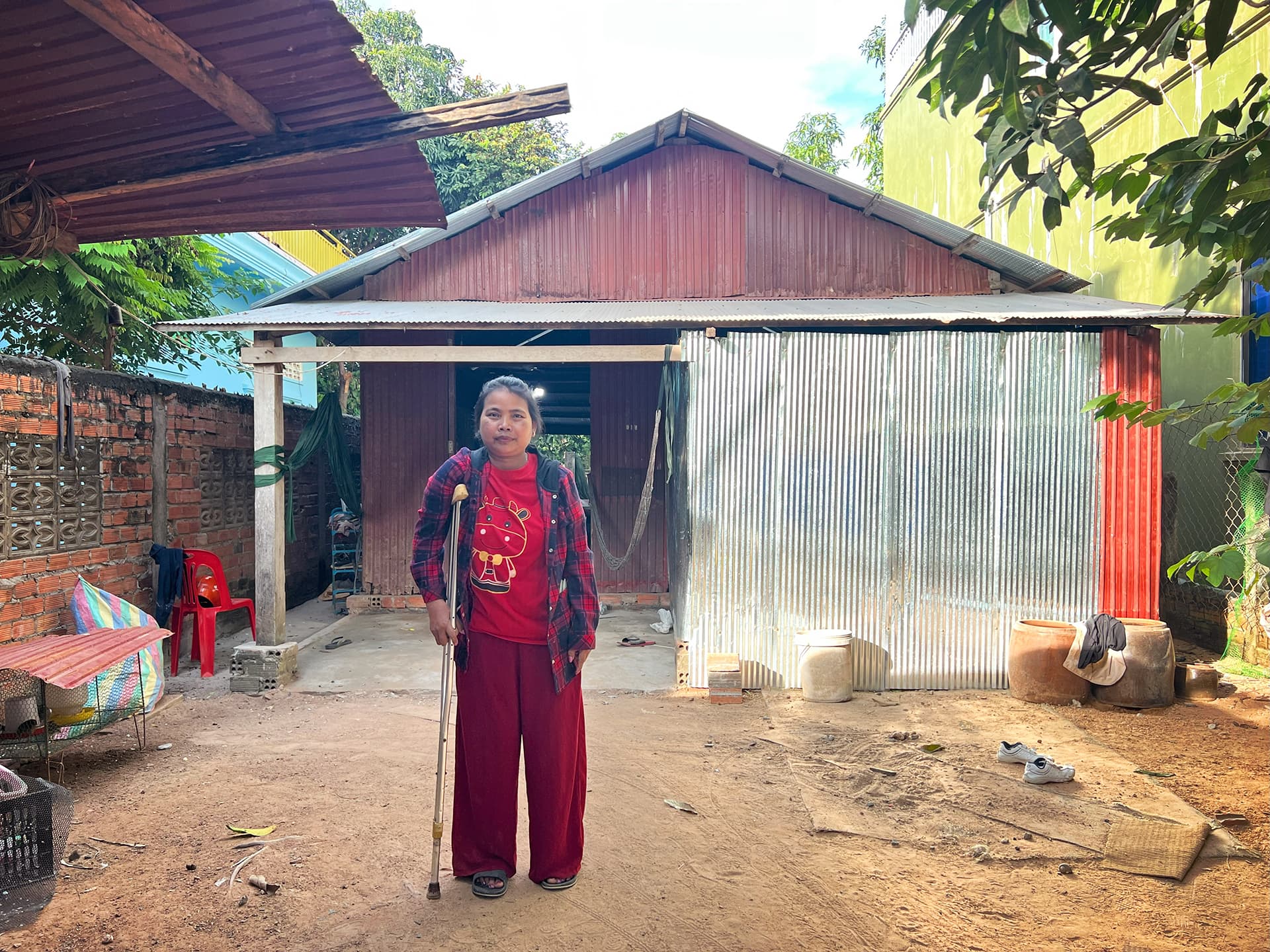 Kambodja. För tio år sedan råkade Phally Norm ut för en trafikolycka och skadade ena benet svårt. Förutom smärtan och svårigheten att röra sig har hon också drabbats av diskriminering och stigmatisering. Vändpunkten kom när hon gick med i Diakonias samarbetsorganisation Women’s Resource Center, WRC. är får kvinnor och flickor med funktionsnedsättningar stöd och utbildning. hallys självförtroende har ökat och hon kan idag uttrycka sina behov och hävda sina rättigheter. Phally fick hjälp att starta ett litet företag och hon undervisar nu barn i kambodjanska och föder upp höns.