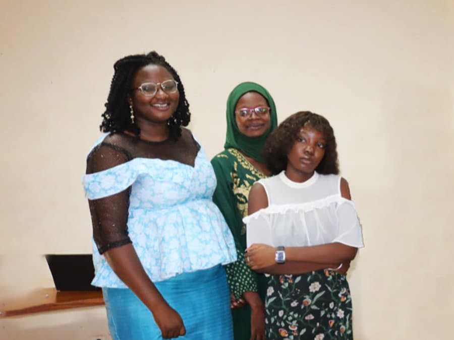 Burkina Faso. Här stödjer Diakonia en feministisk rörelse där erfarna kvinnorättsförsvarare, sociala ledare och unga aktivister arbetar tillsammans för att utmana patriarkala strukturer och skapa förändring. Under 2024 har 74 unga kvinnliga journalister, influerare, politiker och medlemmar i organisationer fått utbildning i demokrati och mänskliga rättigheter, och de har fått verktyg för att vara mer aktiva i beslutsfattande och främja unga kvinnors deltagande i demokratiska processer. Arielle, Sacarlene och Fatimata är tre av de kvinnor som har deltagit.