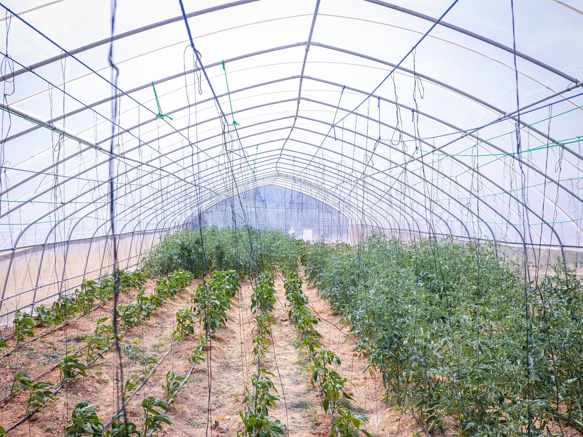 The mesh means that the greenhouses are better able to cope with the wind, while also preventing insect damage. And drip watering means that the water that is available is used efficiently.