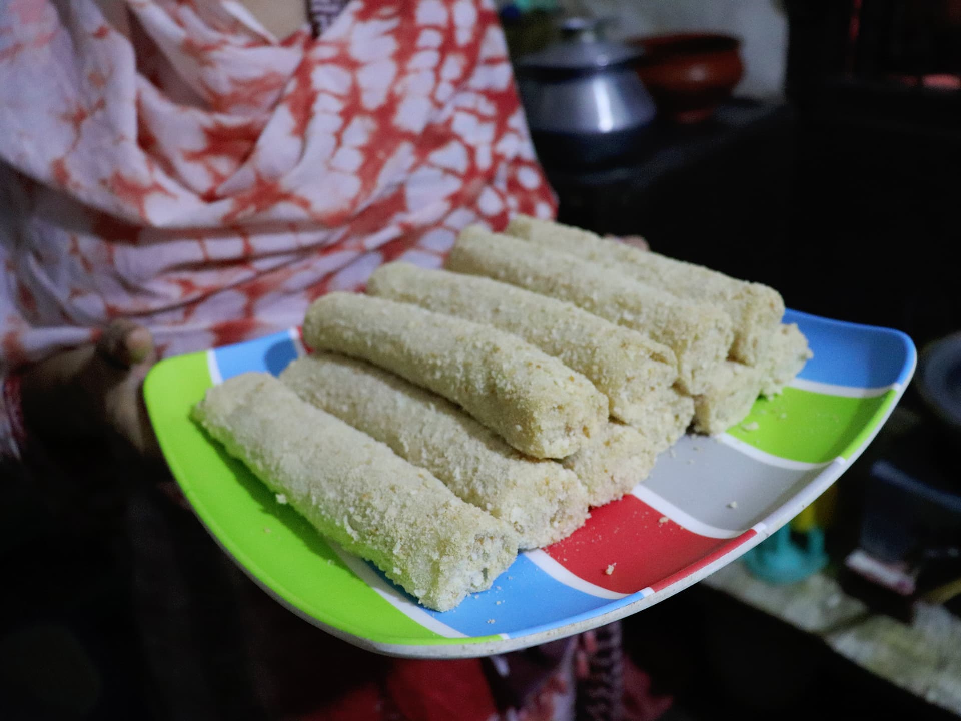 Naher had to move out from their old house to live in a shared flat with three other neighbours. Privacy and security are the main concerns for her since her daughter is 18 years old now. However, this is the only place she can afford. Now she has become the family's primary breadwinner and earns a living by making vegetable rolls at night and selling them to nearby shops in the morning. Her income is unstable since it depends on the order from the shop.