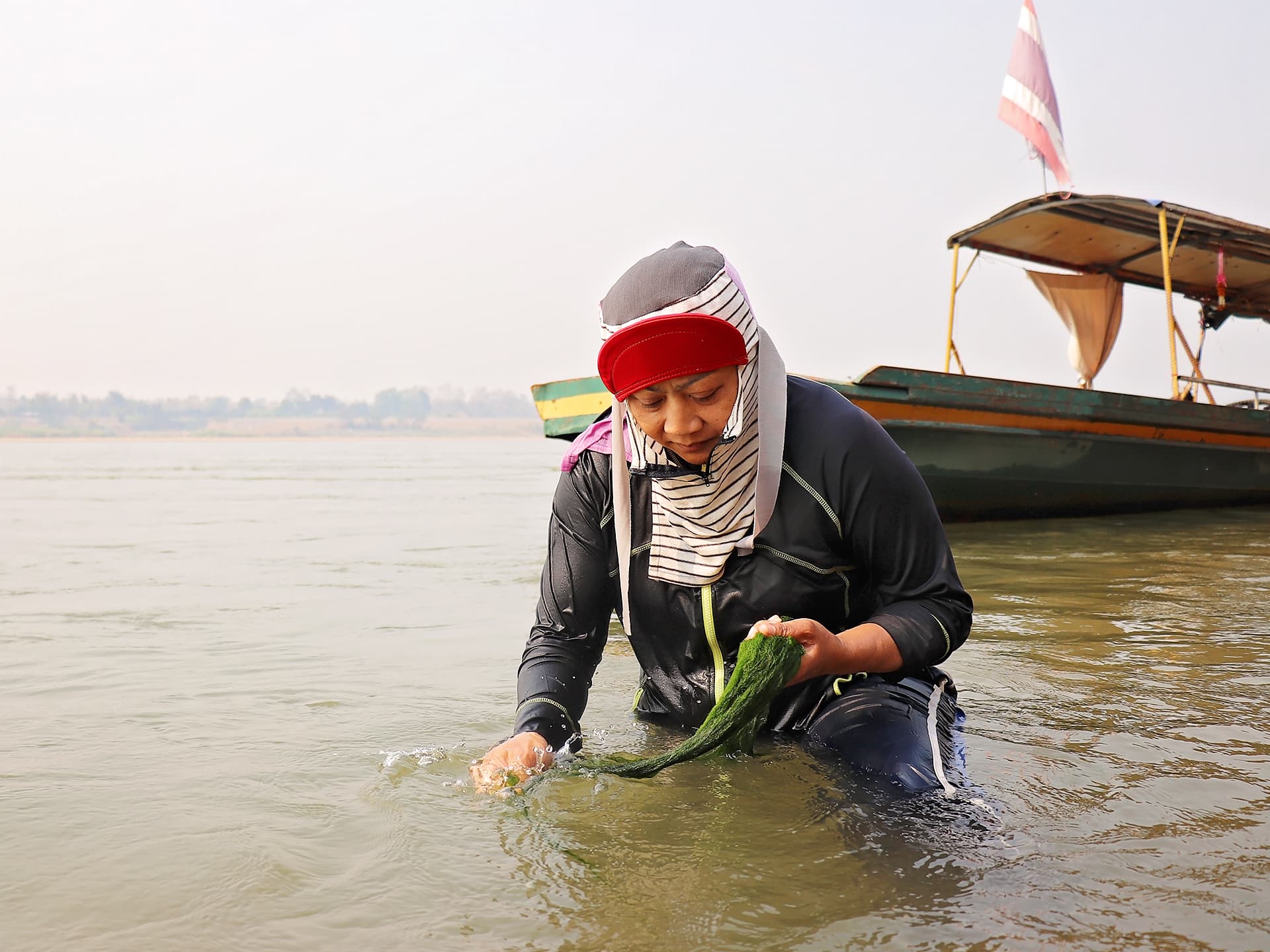 Nestled in the heart of the Chiang Khong district in Northern Thailand, a group of women has found an unlikely source of empowerment - collecting freshwater seaweed, locally known as 'Kai'. This seasonal job, which lasts from March to May, provides them with extra income to support their families.