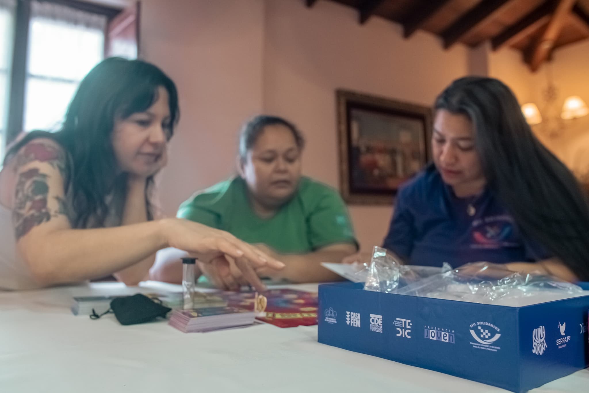 It is a group board game suitable for participants aged 12 and up. Players work in teams, moving pieces along an S-shaped path on the board, symbolizing Solidarity/Sisterhood. This path intersects with the letter P for Patriarchy, emphasizing that we still live in a patriarchal system and that unity and sisterhood are key to confronting it. The game involves advancing through various squares by guessing facts about historical figures, collectives, or events, identifying types of violence or concepts, acting out scenarios, and even collaborating across teams.