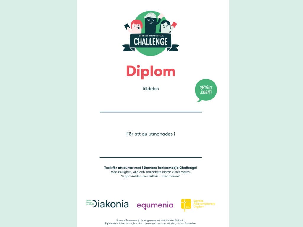 Barnens tankesmedja Challenge är ett samarbete mellan Diakonia, Equmenia och Svenska Alliansmissionens Ungdom.