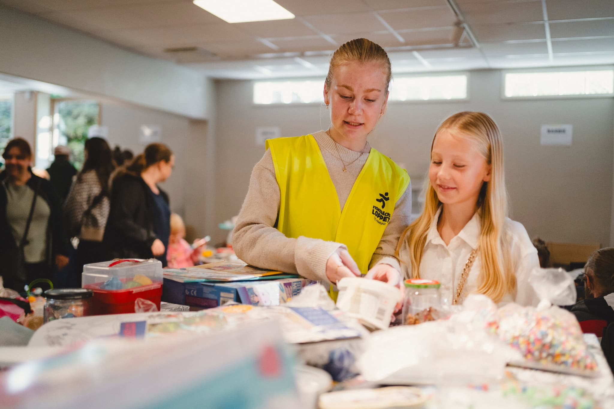 Ett 60-tal volontärer ser till att allt flyter på bra och församlingens scouter är med och säljer fika, När dagen är slut samlas överblivna saker ihop och skickas till kommunens fritidsbank och till en second hand-butik. Allt kommer till nytta!