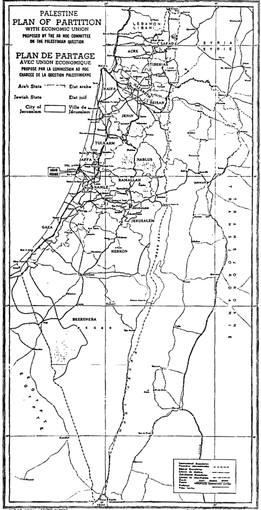 Map based on Annex A to United Nations General ASsembly Resolution 181 (II).