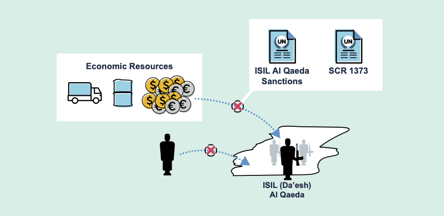 These sanctions prohibit making funds, financial assets or economic resources available directly or indirectly to designated persons or groups.