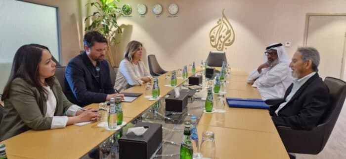8 May 2025In April 2025, a team from the IHL Centre visited the Al Jazeera Media Network headquarters in Doha. The team met with Dr. Mostefa Souag, Director General of Al Jazeera and Sami Al-Haj, Director of the Al Jazeera Center for Public Liberties and Human Rights, to discuss the relevance and importance of IHL in the region, and opportunities for collaboration with the Centre.