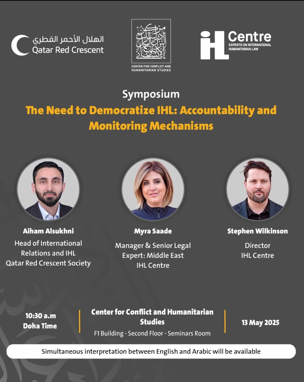 During the visit to Qatar, the team also had constructive meetings with both the Center for Conflict and Humanitarian Studies and the International Committee of the Red Cross - ICRC Mission in Qatar—with both expressing strong interest in ongoing collaboration with the Centre. Looking ahead, the Centre is excited to announce we will be co-hosting (together with the Center for Conflict and Humanitarian Studies) a public panel discussion on 13 May in Doha entitled “The Need to Democratize IHL: Expanding Contributions to International Humanitarian Law.”